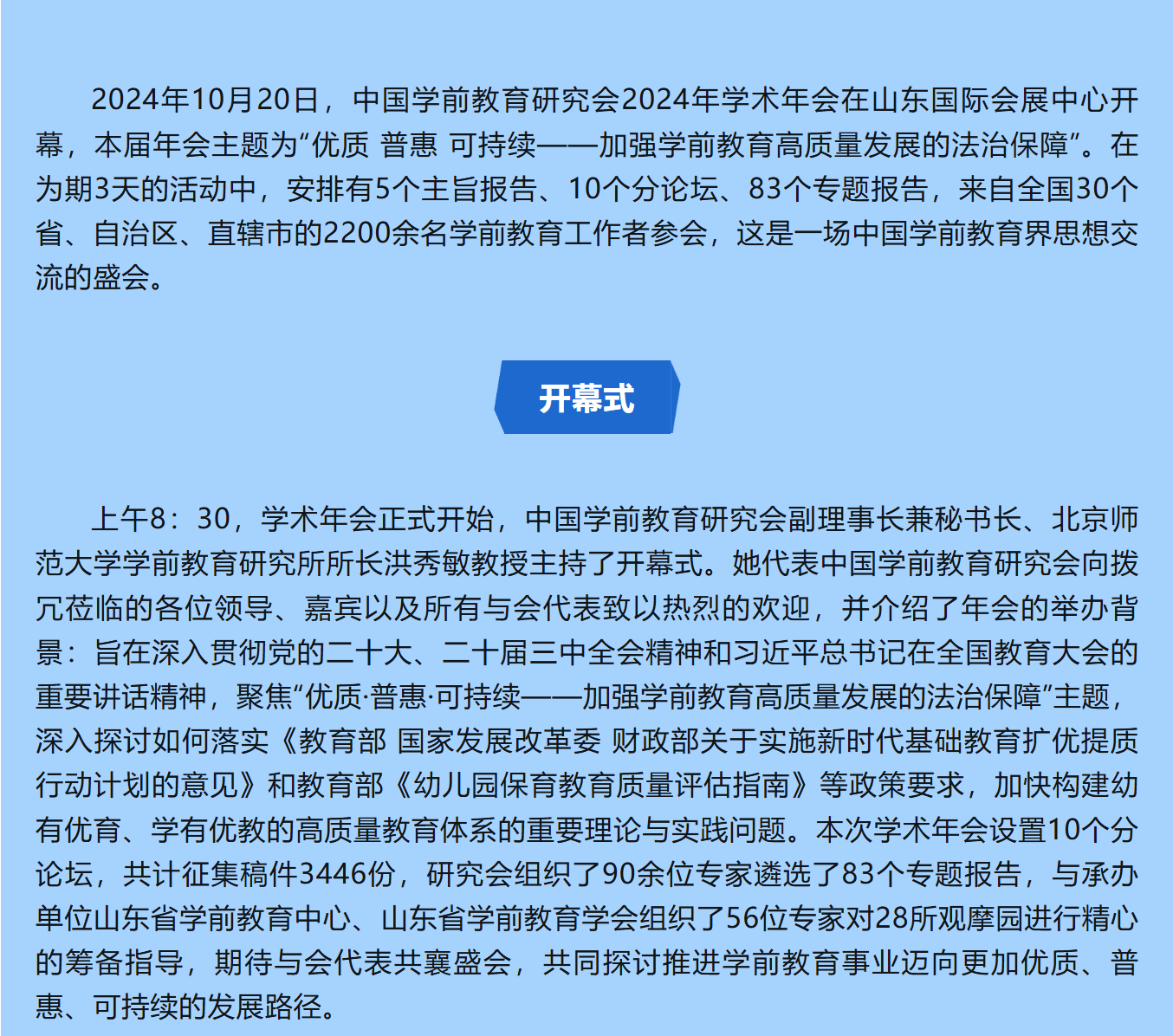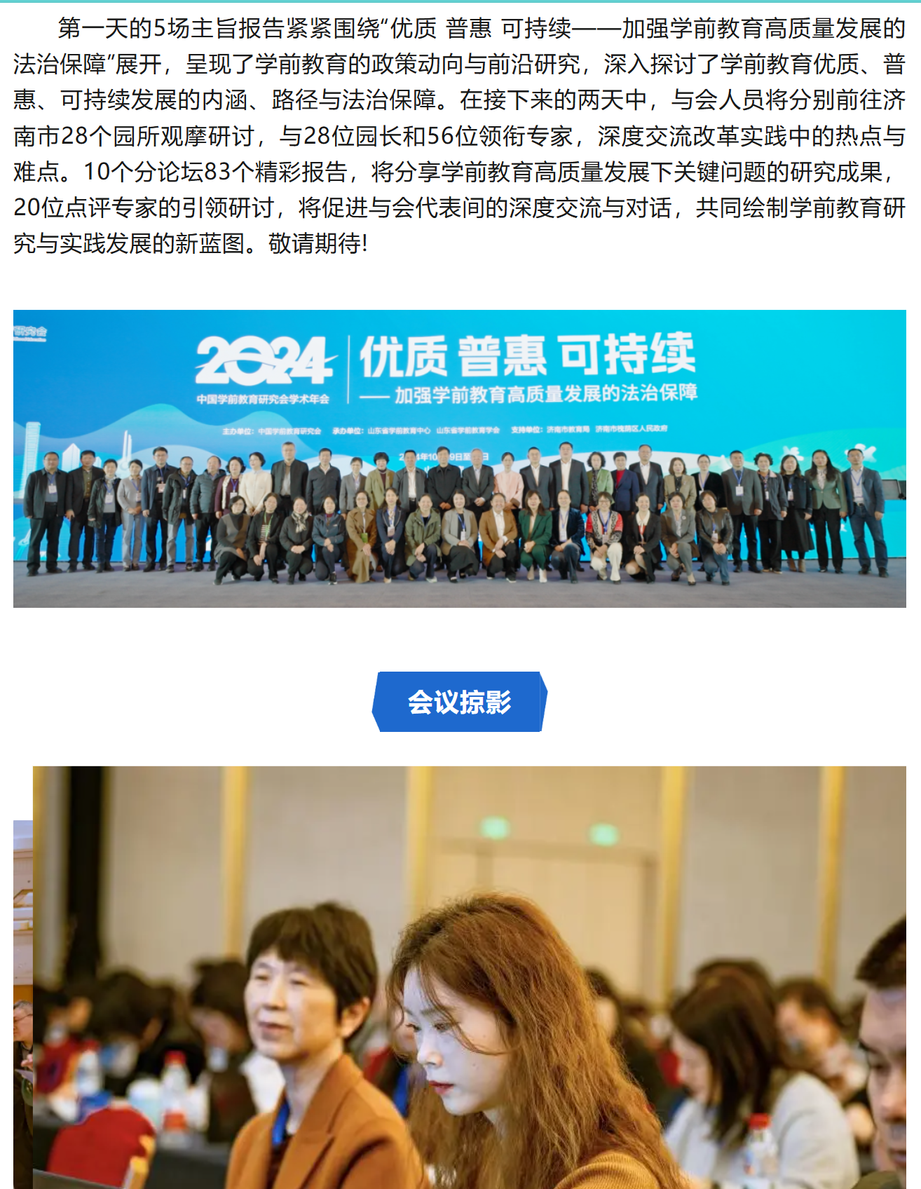优质 普惠 可持续——加强学前教育高质量发展的法治保障!中国学前教育研究会2024年学术年会在济南启幕!