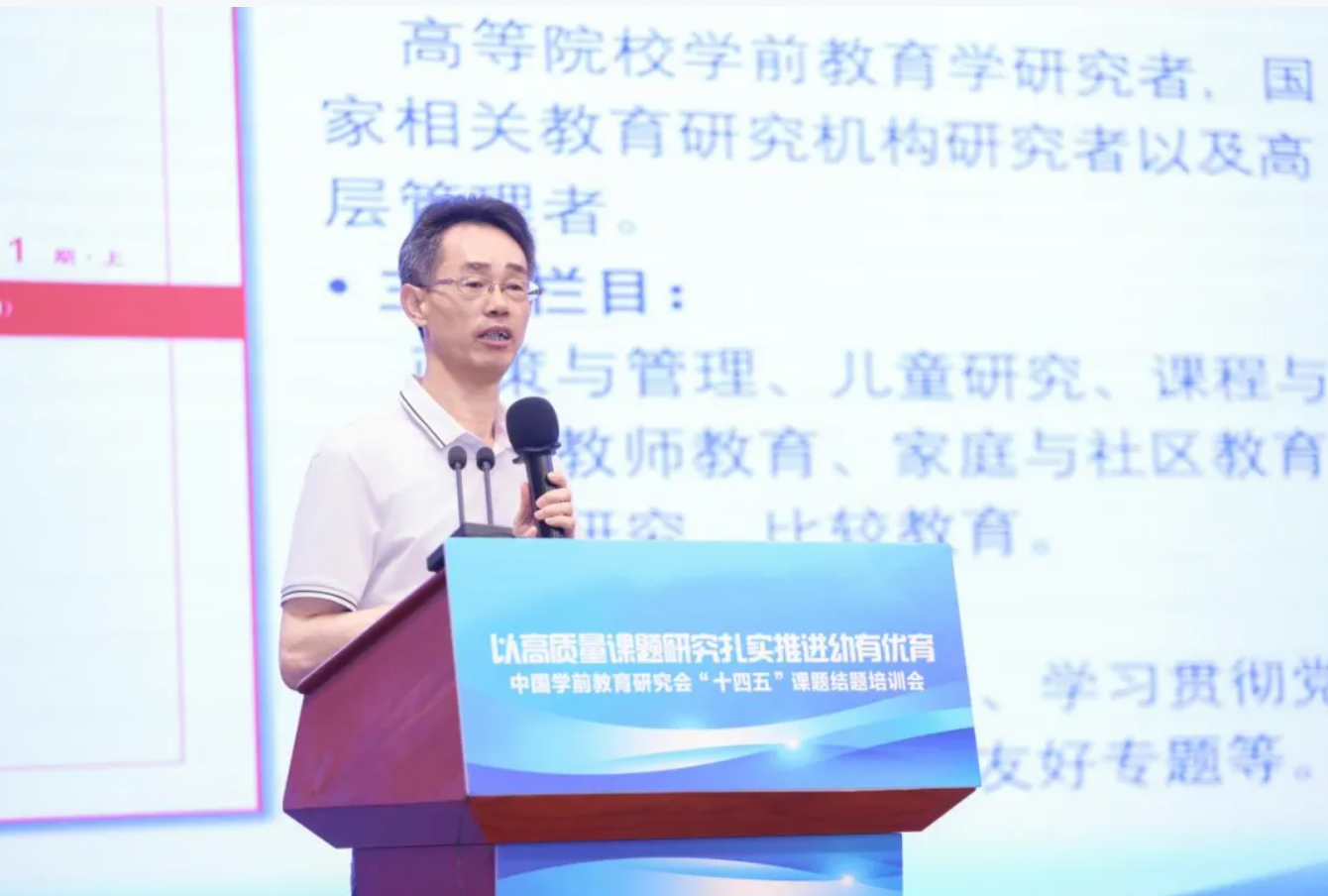 最后,学前教育研究会副秘书长、北京师范大学学前教育研究所(系)李晓巍教授对研究会“十四五”课题结题验收要求作详细阐述。她指出课题结题是课题研究的总结、提炼、升华阶段,事关后期课题成果的鉴定和推广。“十四五”期间研究会立项课题1960项,覆盖多个学前教育事业发展的重点议题与研究方向。为保障研究规范,研究会于2022至2025年共开展三次过程性培训,影响广泛。结题验收环节,要求各课题组详解材料要求,做好成果凝练与转化,做好研究工作与成果总结。研究会也将通过多渠道展示优秀成果,扩大高质量研究成果宣传。