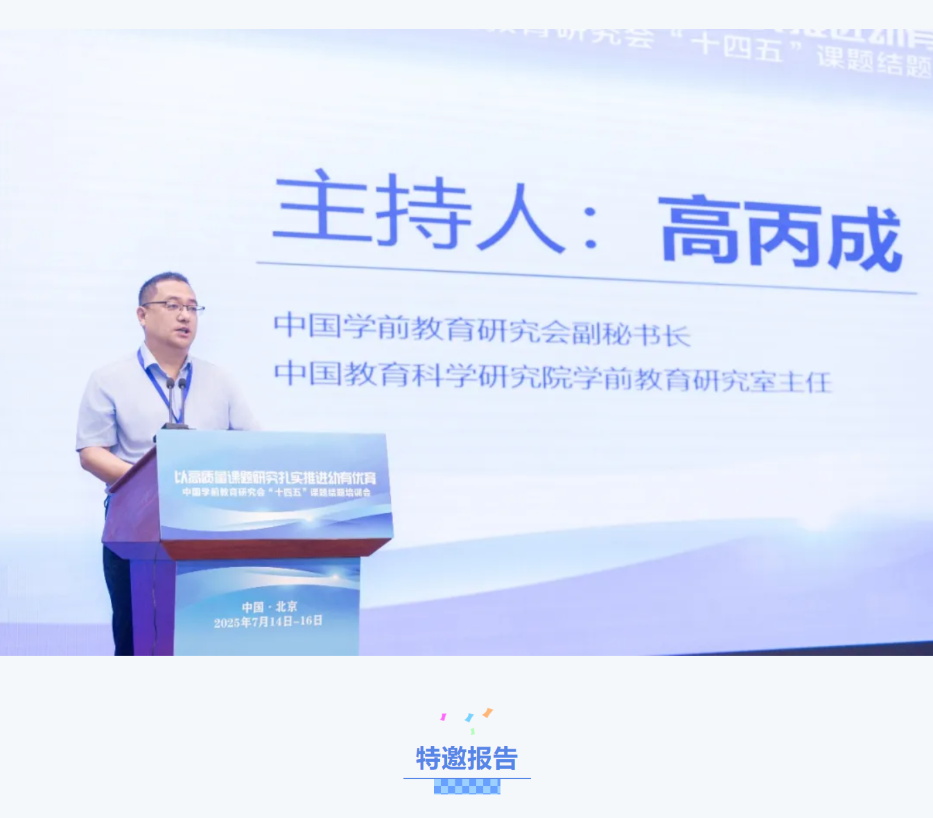 2025年7月15日,中国学前教育研究会“十四五”课题结题培训会在北京隆重开幕。本次会议由中国学前教育研究会与北京师范大学教育学部学前教育研究所(系)共同主办,北京师范大学出版社(集团)有限公司、北京教育融媒体中心《学前教育》编辑部、中国人民大学书报资料中心《幼儿教育导读》杂志社参与支持。本次会议主题为“以高质量课题研究扎实推进幼有优育”,旨在为广大会员提供课题研究方法与经验的交流平台,为扎实完成十四五课题研究、精心打磨和推广课题成果提供指引。来自全国各地的高校、科研机构、幼儿园等单位的学前教育研究者、实践工作者800余名代表,通过线下线上相结合的方式共襄科研盛会、共话课题成果。