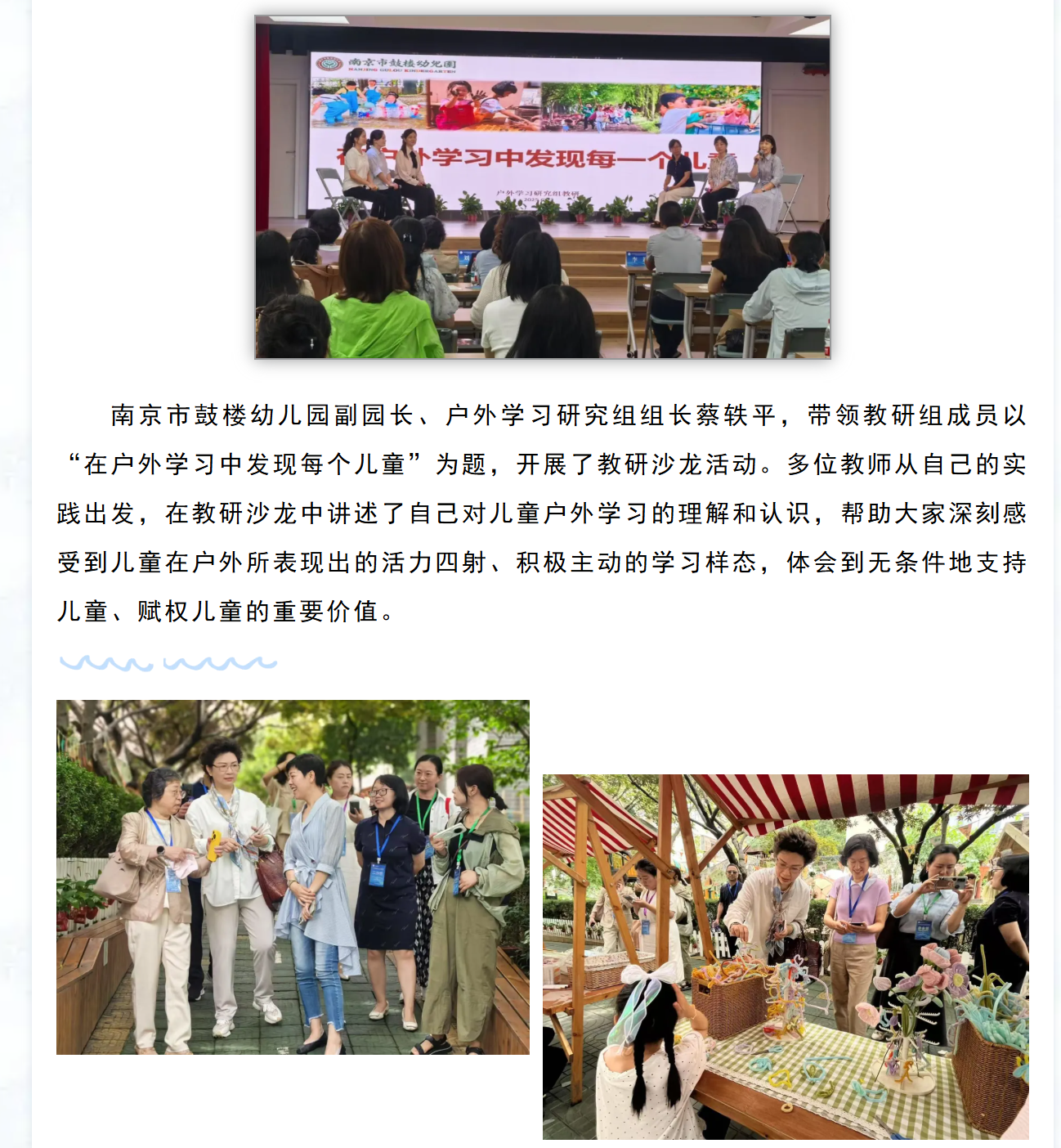南京市实验幼儿园副园长王玮以“教研为光——托举教师评价素养进阶”为题,分享了南京市实验幼儿园通过进阶教研提升教师形成性评价素养,包括需求导向定制分层教研主题,如不同阶段聚焦理论学习、案例分享等;创新教研形式,如多类型教研中的园级和年级组课程审议、专项业务学习等,通过系列教研活动,教师在目标意识、关键经验把握等方面实现进阶,凸显教研活动对教师评价素养提升的系统性作用。